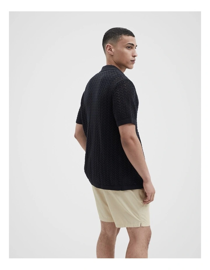 Chevron Button Thru Knit Shirt in Navy