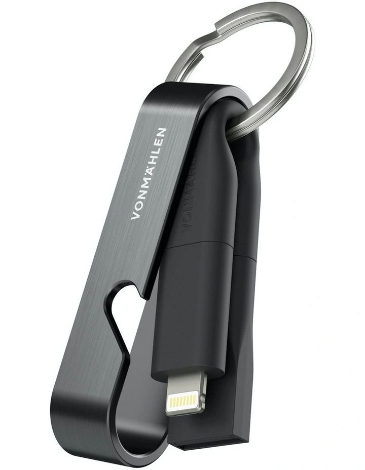 High Six 6 in 1 Key Ring Charging Cable Micro USB C Lighting in Black