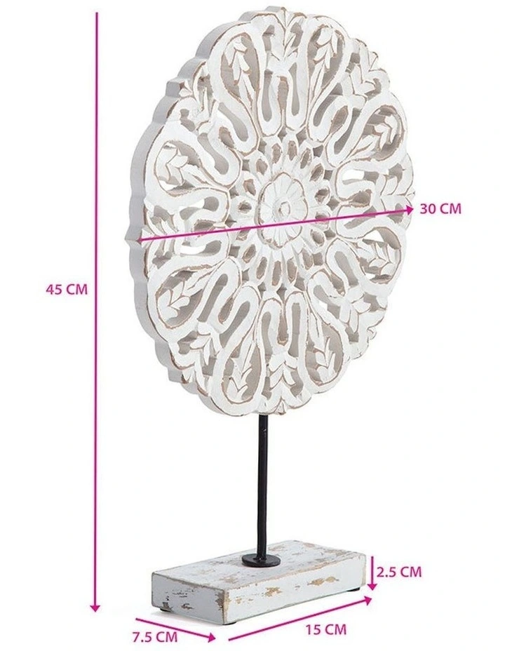 Mandala Flower Tabletop Plaque Decor in White