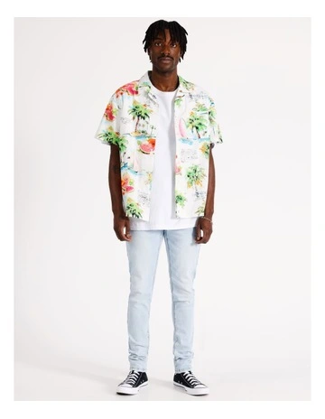 Wild Things Print Short Sleeve Rayon Shirt in White
