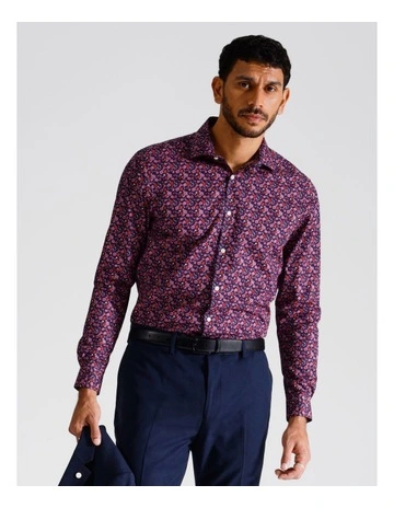 Slim Long Sleeve Shirt 3 Colour Floral Print In Red