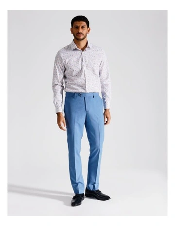 Slim Long Sleeve 1 Colour Floral Shirt in Blue