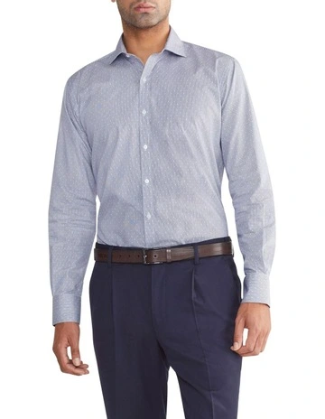 Van Heusen Tailored 2 Colour Line Dot Long Sleeve Print Shirt in Sky