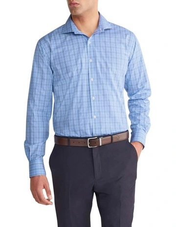 Mid Check Slim Long Sleeves Shirt in Sky